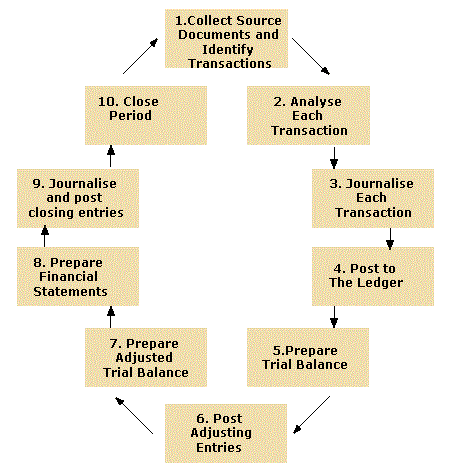 The total set of accounting procedures that must be carried out during each accounting period.